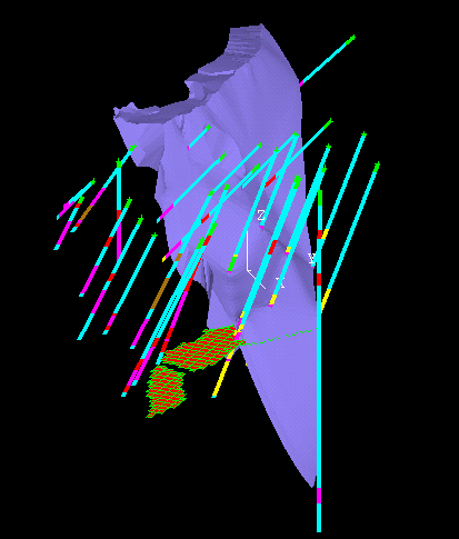 Once the block variables have their respective values, they may be viewed in many different ways, sliced sectioned and colour coded in any orientation. Blocks may be viewed as cubes, points, squares etc. after selection criteria have been applied. The block model may be contoured according to grades, rock types, economical or other variables.