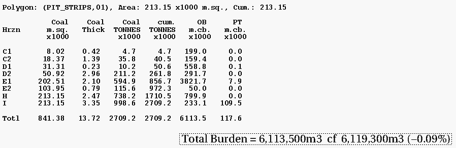 Diagram 2 shows the resulting report for Strip 01 Reserves calculated from mining burden grid (OB).