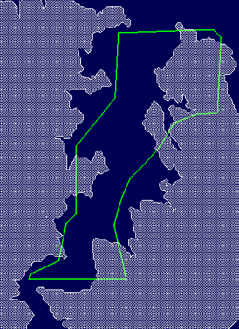 Coal seams may have "no coal" and "sub-crop" polygons that make up coal bench limits. Diagram 3 shows the reserve area under consideration. The green polygon is the proposed mine area. The shaded area is the polygon created by a Grid Calc macro for the overburden bench 4. The naming convention used for limit polygon layers is<bench>LIM, for exampleOB4LIM.