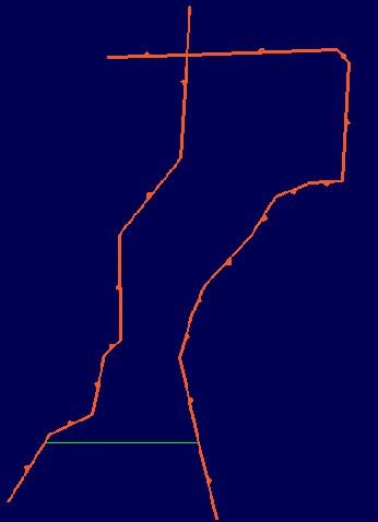 Using Open Pit > Benching and Batters, create pit walls based on the pit design polygon shown in Diagram 3. End wall lines are created around the perimeter. Face wall lines are created based on strip widths and sidewalls are created based on the mining block widths.