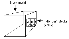 A block model is a series of cuboids that collectively define a larger cuboid. Each cuboid, referred to as a "block" or "cell", defines an exact piece of the 3D space.