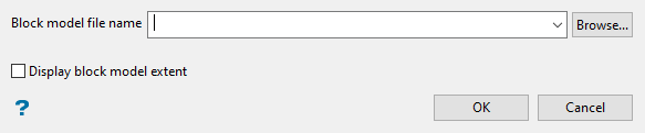 Select the block model that you want to open from the Block model file name drop-down list. The list will contain all block models found in the current working directory. Click Browse to select a file from another location.
