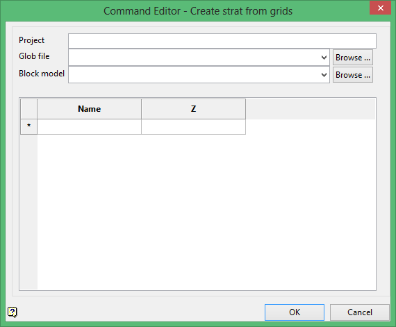 Use the Create strat from grids command to create a stratigraphic block model from a set of stratigraphic grid models created through the Grid Calc menu. A stratigraphic block model is similar to an ordinary block model, however, there is no sub-blocking scheme in the Z direction and block tops and bottoms can be located at any Z value. Z block sizes can vary to reflect the true thickness of stratigraphic horizons.