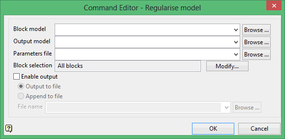 Enter the name of the resulting regularised block  model. Selecting an existing  file will prompt you to confirm that you want to overwrite the file's original contents.