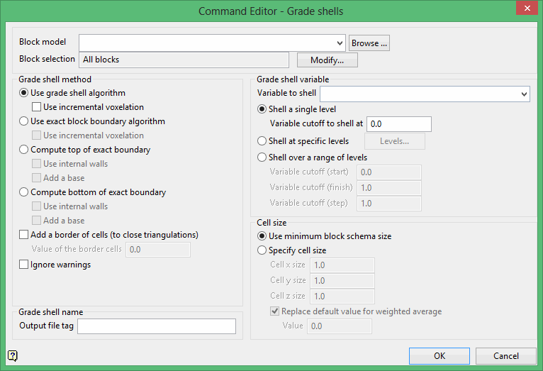Notes The calculations are done at the finest resolution of the smallest sub-block scheme in the model. This option cannot be used with block model files that were constructed through the Block > Construction > Create Stratigraphic Solid option.