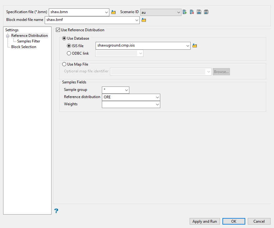 Select the database field containing the Weights that can be used to build the reference grade distribution. Sample values are not changed by the weighting, only its relative importance in the distribution is adjusted. Leave this field blank if you do not want to apply any weighting.