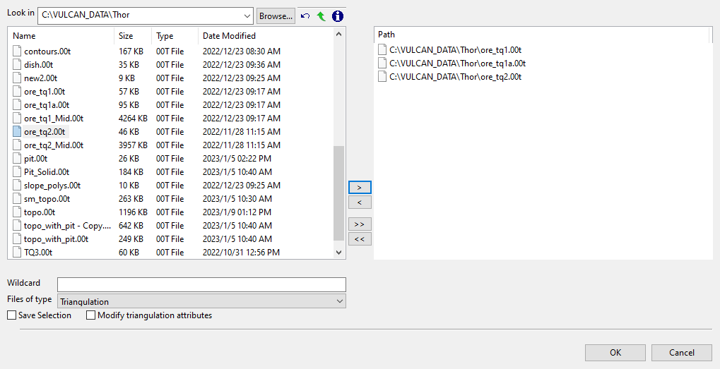 *for a multi-character and?for a single-character wildcard.If you would like to use a previously created selection file (.sel) containing a list of desired triangulation files to load, choose Selection Files (*.sel) from the Files of type drop-down list.