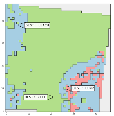 Important: Â Be careful of indicating constraints that do not allow the mining width to be satisfied. If for example you constrain a single block to not be allowed anything other than destination 1, and then constrain all the blocks around it to be not destination 1 then this is an impossible problem.