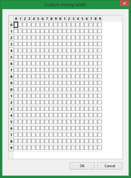 Multiple mining widths allows for the resulting pattern to consider more than just one single mining width, and also provides access to the custom mining width option, where the template is not just a simple rectangle.