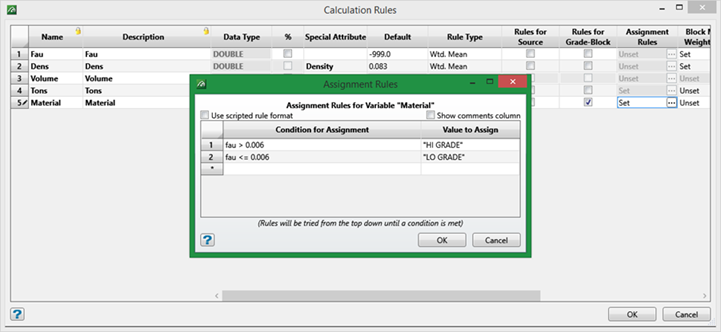 If the option Rules for Grade-Block has been selected, the rules will be applied to the resulting block model.
