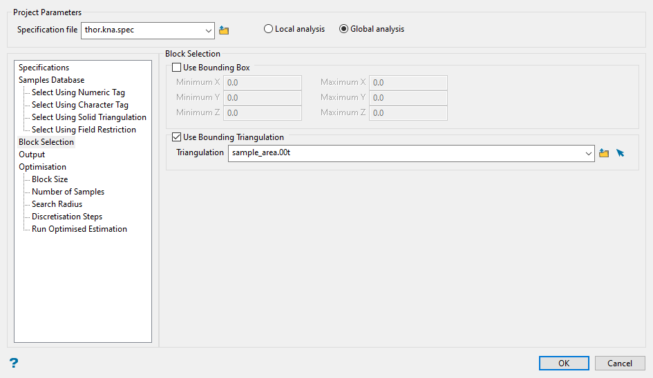 Enable Use Bounding Triangulation to restrict the blocks by a triangulation. This is useful when, for example, you want to evaluate reserves within a particular solid triangulation such as a stope.
