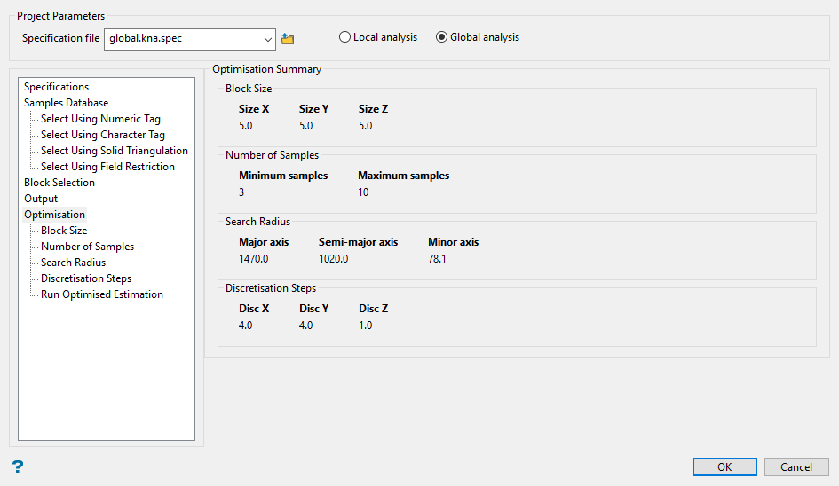 Enter the Optimal values for the search radii after running the optimisation and reviewing the results. These values will be shown on the Optimisation pane and used when using the option Run Optimised Estimation.