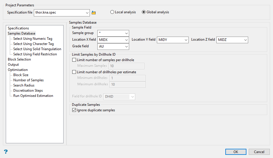 Enable Limit number of drillholes per estimate if you wish to use a maximum number of samples for each estimation. (Optional)