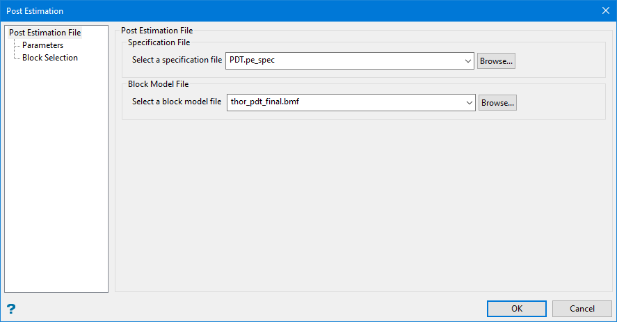 Select the name of the Post Estimation specification file (