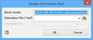 On the Block menu, point to Grade Estimation, and then click Run to display the Estimation Parameter File panel.