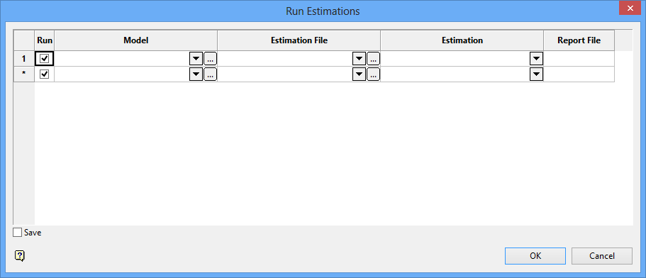 The selected estimations are run in 'top-down' order. If you chose to save the selections, then the Save As panel displays first.