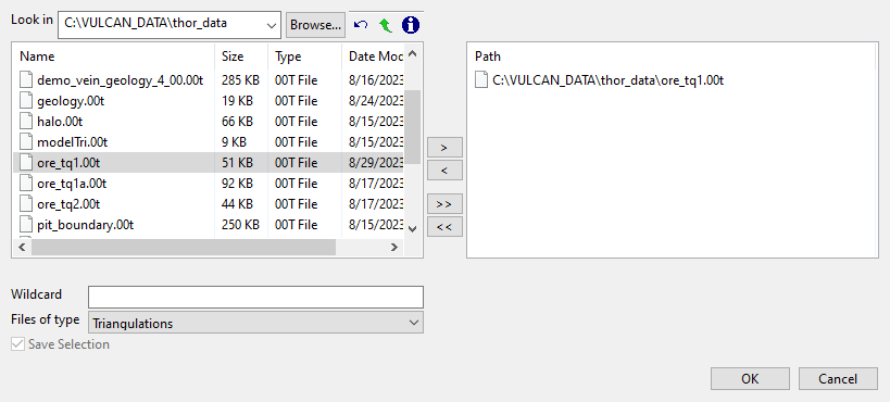 The current working directory will automatically be selected and all available triangulations will be listed in the left side of the panel. If you need to search for another location you may do so by clicking the Browse button at the top of the panel.