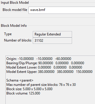 Once a block model has been chosen, the information about the model will be displayed automatically, as shown below in Diagram 1.