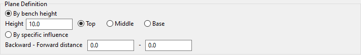 To use By bench height, enter the Height, then select Top, Middle, or Base to represent where the polygon intersects the bench height.