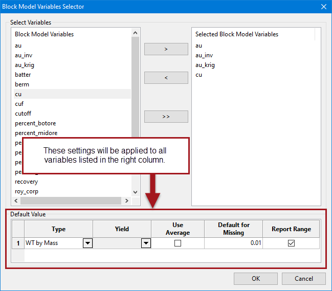 Variable – The required variables from the block model.