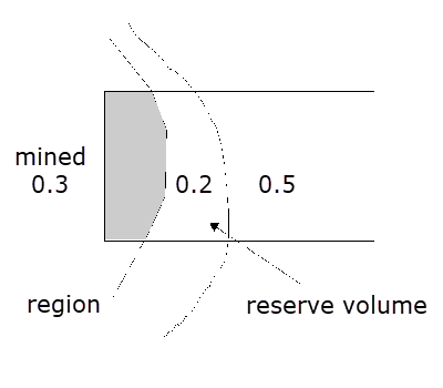 Reserve volume = Volume in region - volume mined