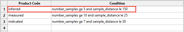 Suppose a block has 12 samples that are all within 20 feet. Since measured is the first condition on the list, that condition will be evaluated first. Since the block satisfies all the criteria for the measured class, it will be flagged as a measured block. It will not be evaluated by any other condition.