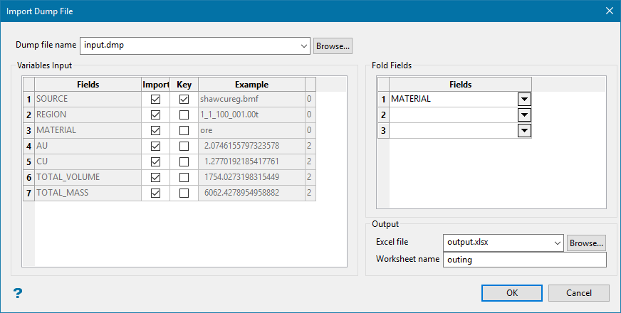 Check the box representing the field that you want to import. Only the fields contained in the chosen dump file are shown.