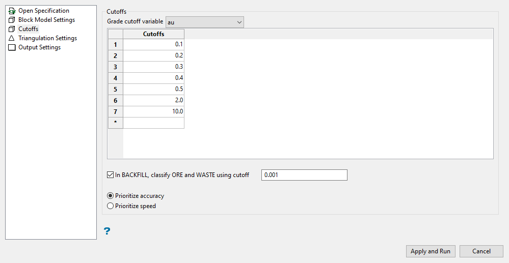 Select In BACKFILL to save the cubic reserves block model that is generated during the process.