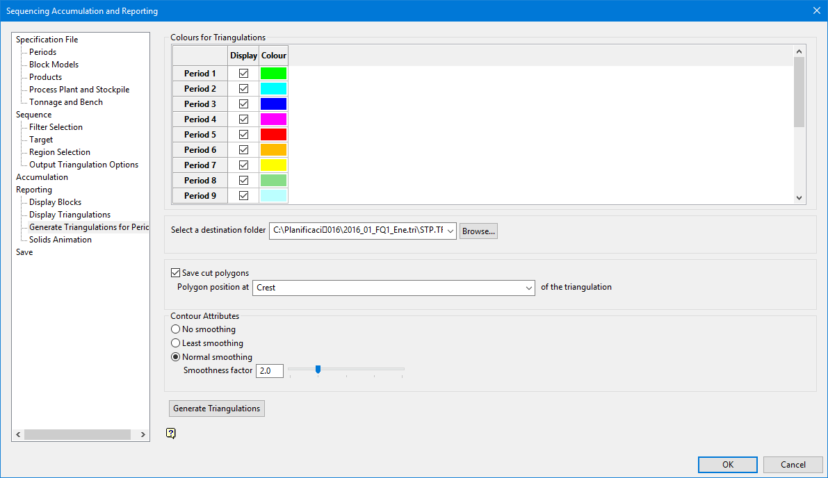 Use the Generate Triangulations for Period option to assign colours to, smooth, and generate triangulations for each defined period.