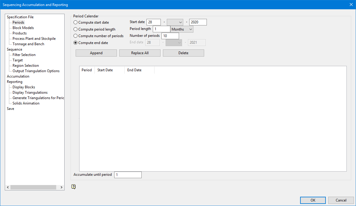 On the Block menu, click Sequencing Accumulation and Reporting, and then click Periods to display the following panel.