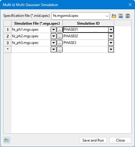 Use this option to perform more than one sequential Gaussian simulation using the parameters defined in existing Simulation specification files.