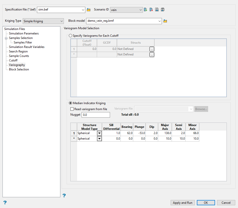 Median Indicator Kriging - Use one variogram that will be used for all cut-offs. You can use an existing variogram file or enter the parameters directly into the table, as just described above.
