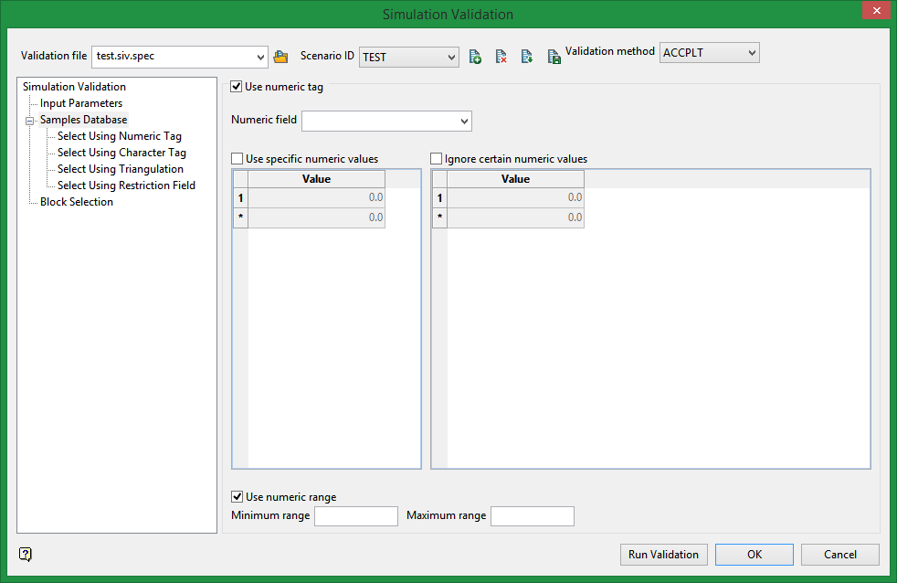 Select this checkbox to limit the samples to a specific numeric field. Once the numeric field has been specified, it is then possible to nominate whether to include or ignore those entries that contain specific numeric values.