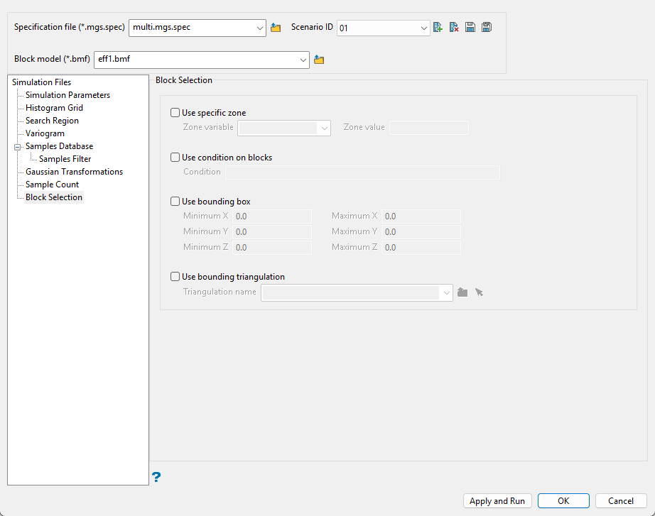 Select which blocks you want to include in the simulation run. By default, all blocks will be included unless otherwise specified.