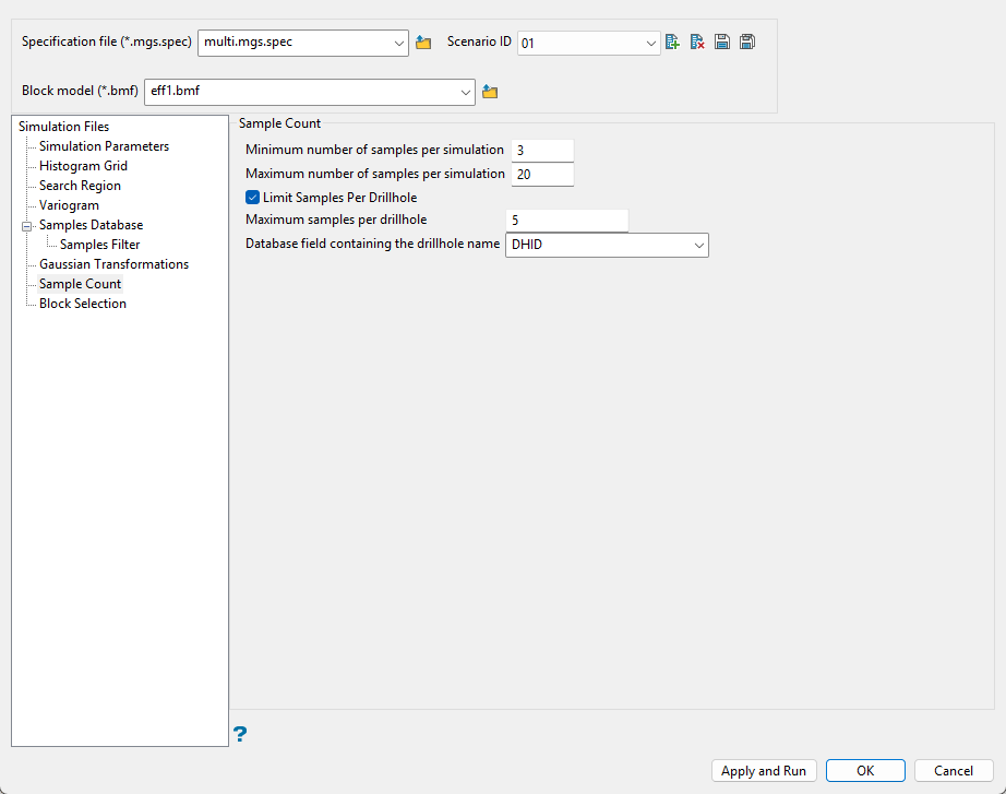 Select Limit Samples Per Drillhole to limit the number of samples to use that come from a single drillhole.