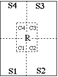 In Figure 1, R indicates the regular block, S the sub-blocks, and C the common blocks. The number of sub-blocks intersected by a regular block is denoted by NSB in the descriptions and equations for the regularisation methods below.