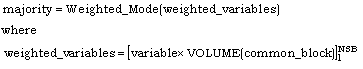 Note: Â In case of a tie between common blocks of different values, where they occupy the same proportion of the regular block's volume, the lowest numerical value takes precedence in determining the regular block's value. For name-type variables, the associated translation table will be used to obtain the numerical value for a given string, and the lowest numerical value will be determined that way in case of ties.