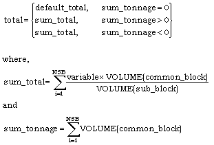 This method calculated the total of the variable from the sub-blocks intersected by the regular block. The calculation may be defines as follows: