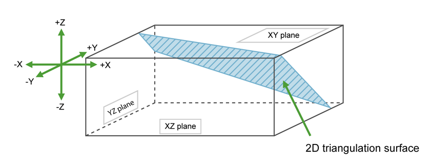 For triangulations (ore bodies) that are near to horizontal, that is, lying in the XY plane, you would project along the Z axis. The area of interest is then below the triangulation (if None is selected for inversion) or above (if Partial or Complete inversion is selected).