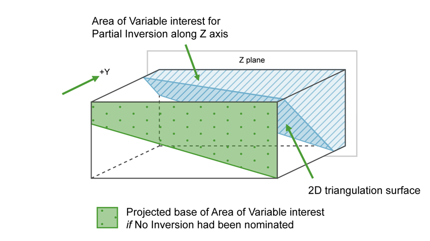 If None is selected for the Inversion field, then the negative side of the triangulation is the area of interest for the variable. If Partial or Complete inversion is selected, then the positive side of the triangulation is the area of interest.