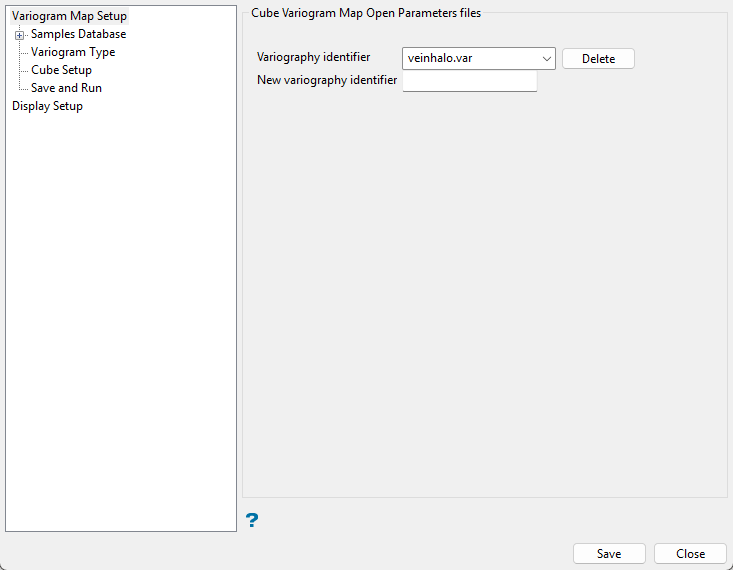Select the Variography identifier or enter a new variography identifier. This is the name of an existing variography parameter file.