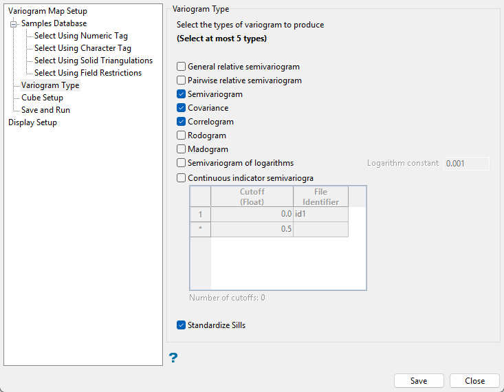 Click Save and Run in the menu tree to calculate the variograms.