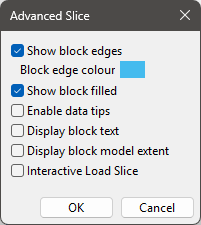 Select this check box to colour the slices using a Vulcan colour scheme. A default scheme file and type is entered automatically, these can be altered. Select the file, type and colour legend from the drip-down lists.