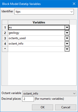 If this check box is selected, the Block Model Datatip Variables panel will be displayed.