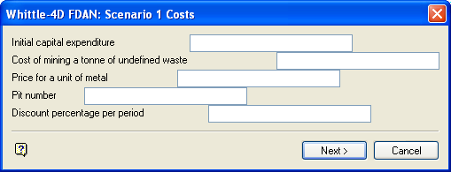 Each scenario may consist of seven panels, four for the Scenario details and three for changing the parameter values. The first panel is the Whittle-4D FDAN: Scenario 1 Costs panel.