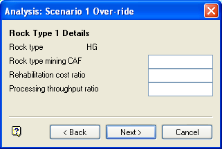 - Processing throughput ratio (only required if the rock type is referenced by an open-pit or underground combination).