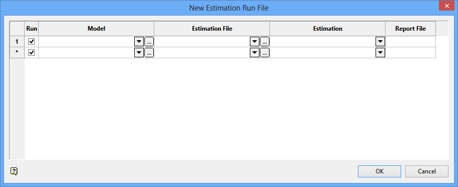 On the Estimation menu, click New Estimation Run File to display the New Estimation Run File panel.
