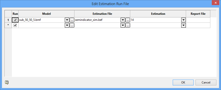 Select the run file that you want to load, and then click Open to display the Edit Estimation Run File panel.