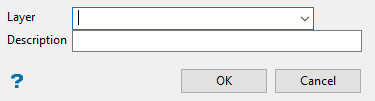 Enter a description of this layer. The description can contain up to 80 alphanumeric characters and can include spaces. If a description is not entered, a default description will be used instead. If the selected layer already has an assigned description, it displays when the layer is selected. Existing layer descriptions can be overwritten.