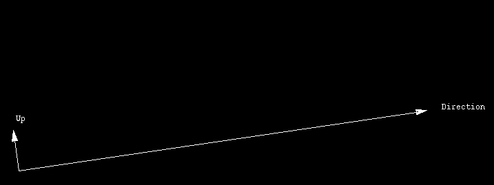 As soon as you indicate the direction, the text coordinate system will be displayed on the screen as a pair of 3D arrows. These arrows are labelled Direction and Up.